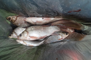 | 저 아이스박스에는 붕어가 몇마리 일까요? |