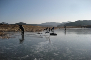 | 얼음낚시는 부지런해야... 역시나 여기도 아닌가?? |