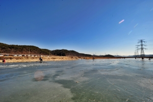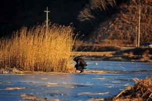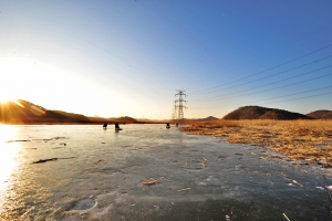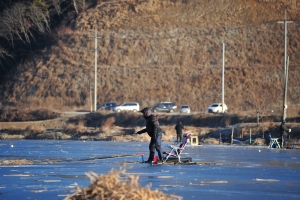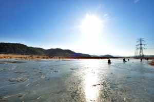 토요일 하루 종일 흐리고 비가 내려 일요일 얼음판위의 햇살은 참으로 반가웠습니다. |