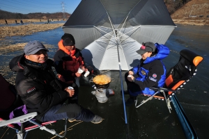 | 간만에 얼음위에서 라면+소주를 합니다. 얼음위에서 먹는 라면맛은 정말 일품이지요~ |