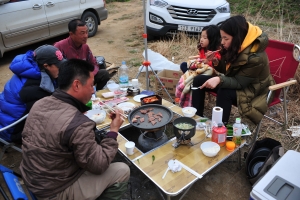 | 잘 달궈진 숯불에 필자가 좋아하는 떡을 구워 먹습니다.^^ 모두들 좋아해서 다행입니다. |