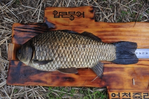 | 철수길에 들른 강가에서 1시간반 낚시에 글루텐쌍포로 필자에게 잡힌 35.5입니다^^; 뭐 인정하시든 말든 4호 월척으로 마감합니다^^; |