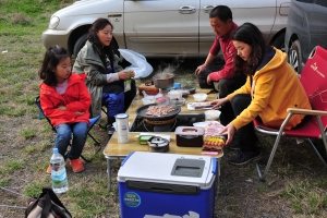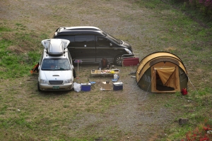 | 필자 가족이 일어나기 전 아침식사 준비를 위해 주변청소를 하고 있는 쥴리님입니다. 저희가 가는곳은 모두 깨끗히 청소하고 옵니다. |