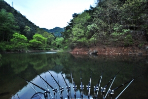 | 쥴리형수의 대편성입니다. 이 소류지는 2.5칸을 펴도 수심이 3미터 입니다. 요즘 성적이 안좋았으나 여기서 해결하네요~ |