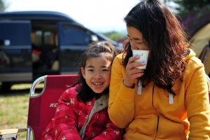 푹자고 일어난 필자 가족 한송이님과 민서 입니다. 일요일 날씨가 좋아 참 다행입니다. |