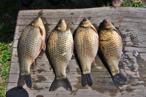 | 드뎌 쥴리형수도 한마리를 걸어 냅니다. 월척급의 붕어를 보고 필자의 줄자로 계측해보니 31이 나옵니다. 올 1호 월척입니다. |
