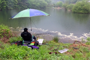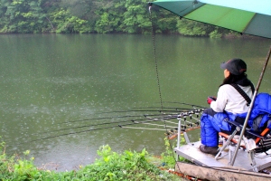 부연지 하류권에서 중층낚시를 즐기는 모습 |