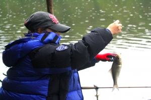 | 마눌님도 입질 파악하고 제대로 손맛을 봅니다. |