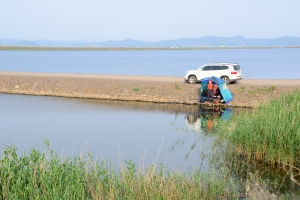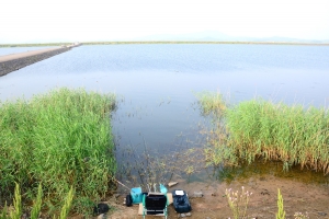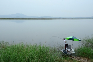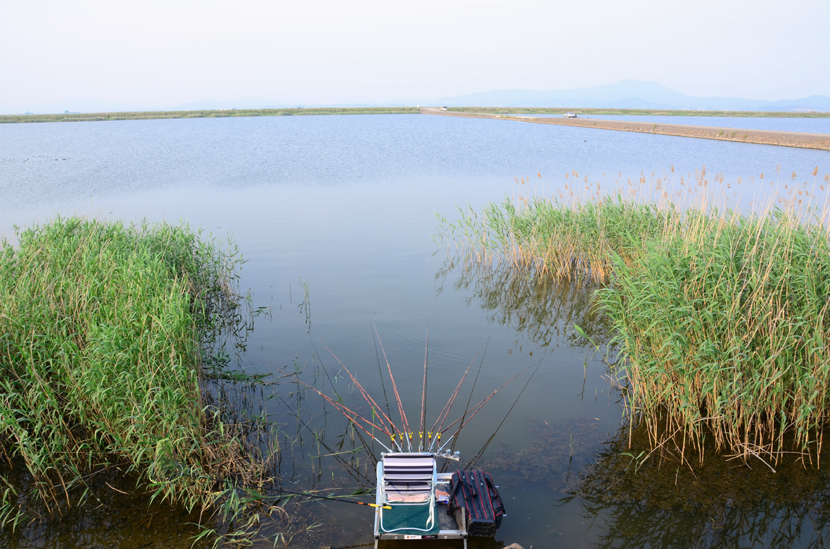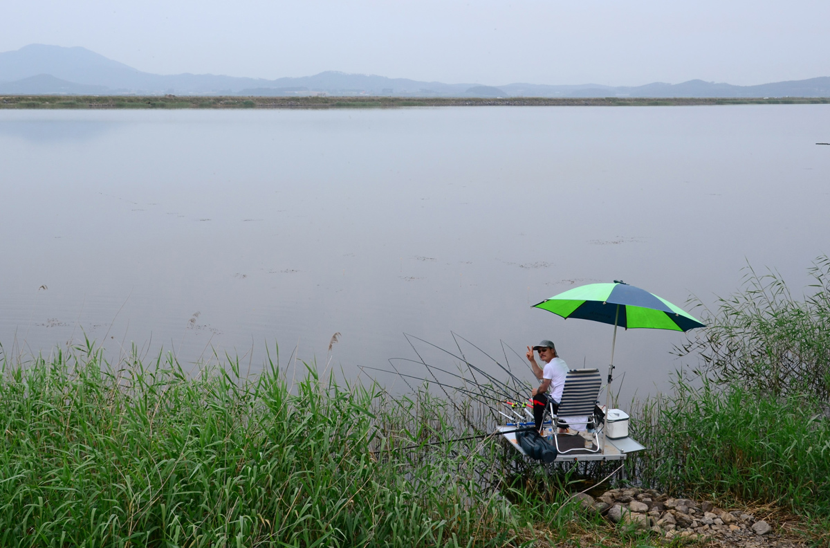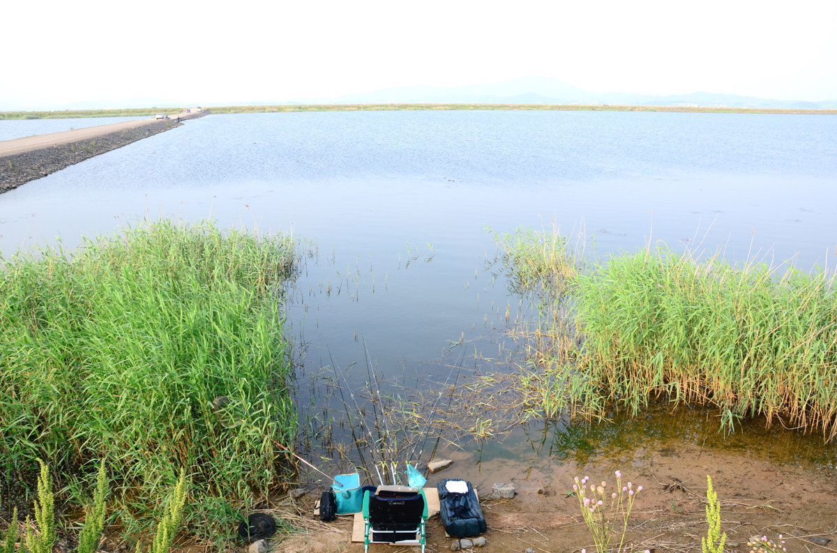 | 예스 형님은 새로 생긴 제방에서 갈대를 향해 자리했어요. |