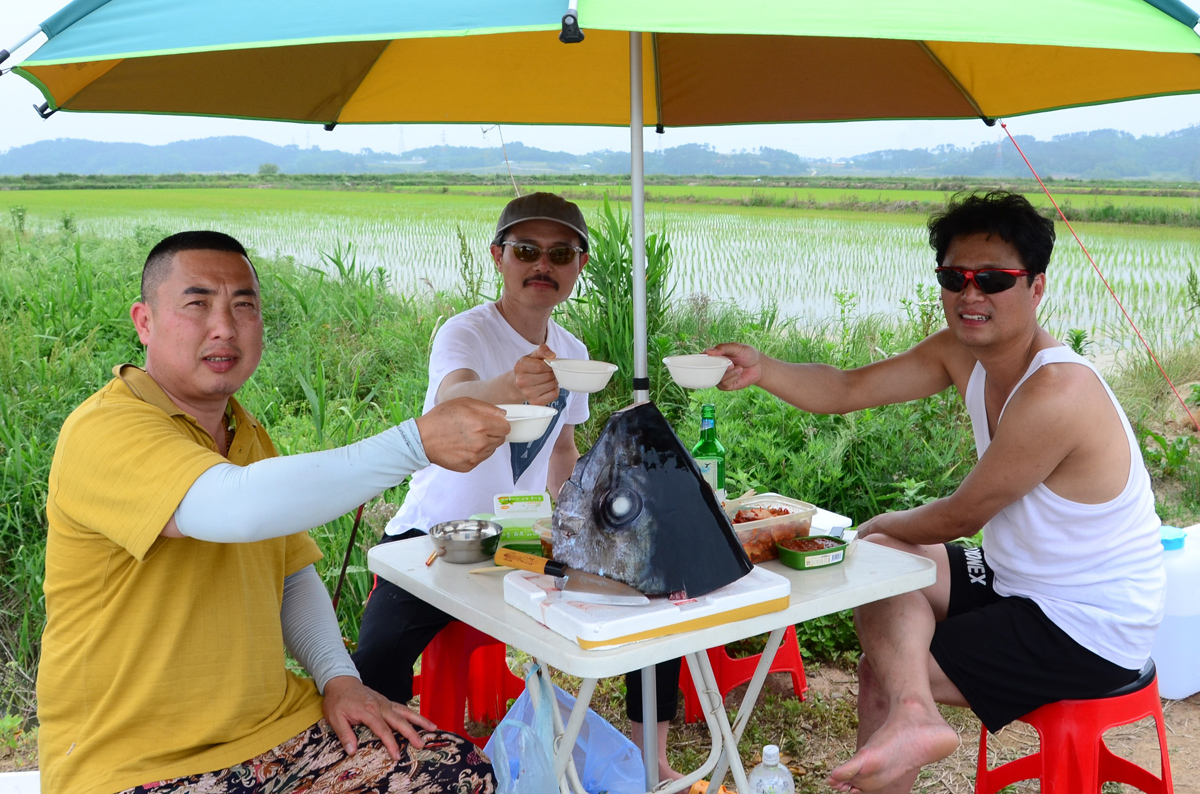 발전소에 근무하며 자전거 하이킹을 즐기던 분도 함께 참치회를 먹습니다. |
