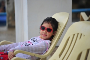 민서가 비치의자에서 포즈를 잡아줍니다. |