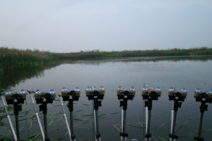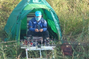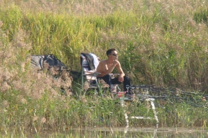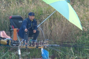 | 밤에 도착한 주병석님의 포인트.. 밤에는 말풀과 마름때문에 찌 안착을 못시키고 아침에 대 편성을 하는 주병석님 |