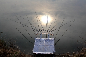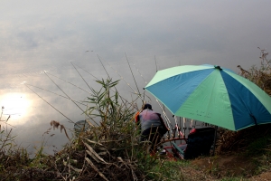 용인 사장님이 끌려 나간 낚싯대를 건지고 있습니다. |