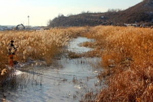 갈대 수초속으로 파고 들어가기에는 역부족입니다. |