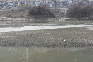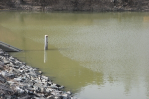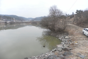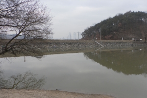 | 수위가 많이 내려간 제방권 상류권의 준설계획으로 배수 중입니다. |