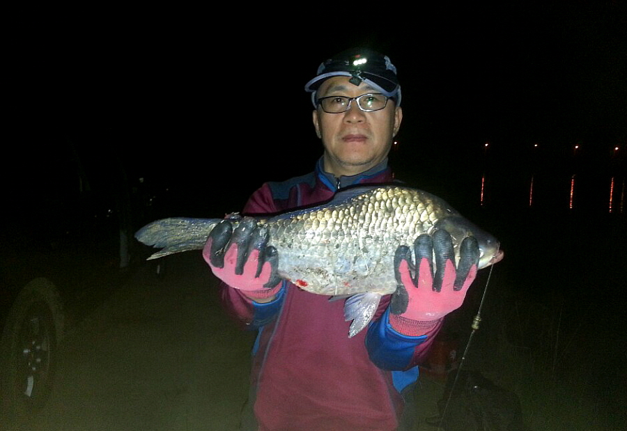 | 동틀 무렵에 월척을 걸어 내었습니다 |