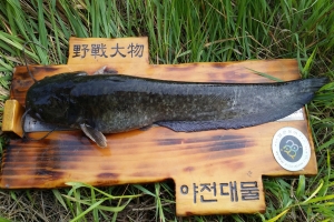 | 낚시대 7대를 감아 놓은 60cm급 메기 입니다..ㅎㅎㅎ |