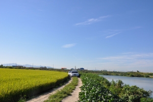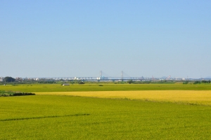 청명한 가을하늘 아래 누런 황금 들판이.... |