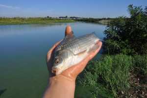 마을 다리를 지나면 바로 낚시하는 조사님들이... 방금전에 오셔서 8치 두수하셨다네요. |