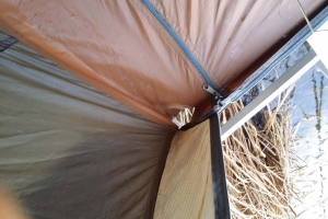 | 밤에 바람이 얼마나 심했는지 아침에 보니 텐트가 짖어져 있습니다. |