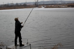 | 릴을 던지자 말자 지렁이를 물고 붕어가 나옵니다 |