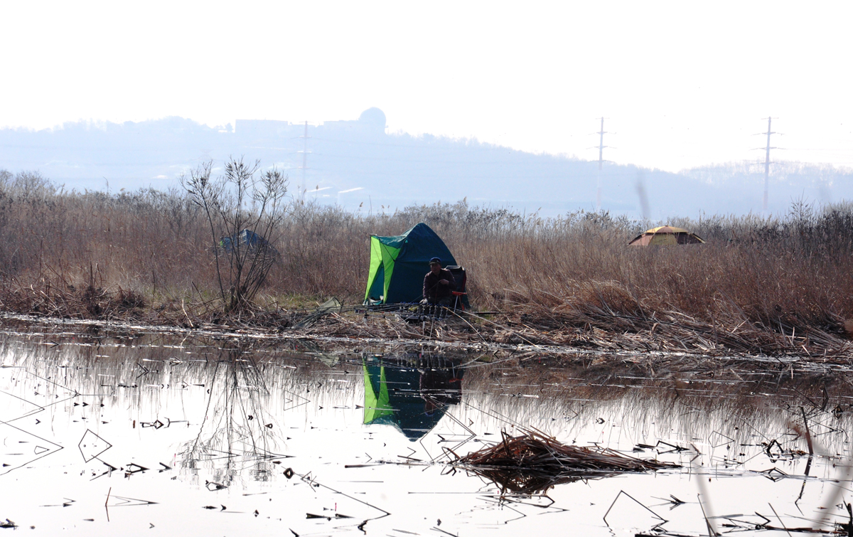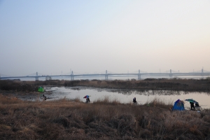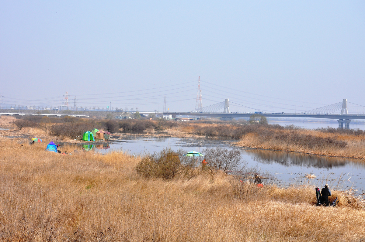 | 차에서 본 좌측의 꾼들이 아침장에 열중.... |
