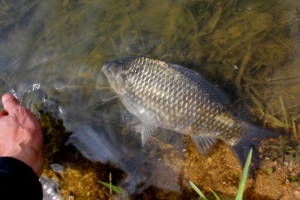 얇은 수심으로 붕어둘이 타고 올라 옵니다 |