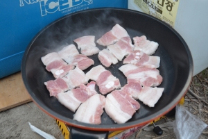 | 저녁 6시경 삼겹살을 구워 맛난 식사를 합니다 |