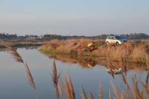 쓰레기를 주워 분리수거하여 차에 실고 옵니다 |