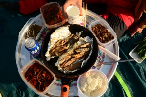 | 철호형님 와이프가 준비해주신 맛난 꽁치로 아침을 먹었어요 |