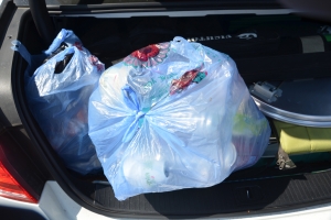 | 쓰레기를 주워 분리수거하여 차에 실고 옵니다 |