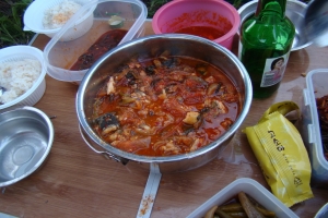 소방대장님께서 장어탕을... 소주와 막거리로 달려봅니다. |