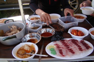 | 소방대장님께서 장어탕을... 소주와 막거리로 달려봅니다. |