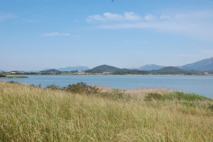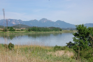 | 바닷가 제방에서 바라본 저수지 전체 모습입니다 |