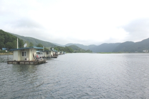 | 하절기 수위로 맞추어진 춘천댐 신포좌대들입니다 |