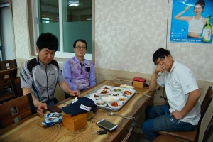 | 수초이발사 열심히 낚싯대 편성중 입니다. |