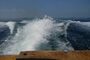 | 한낮의 시원하게 물살을 가르고 3시간여 백도인근 먼 바다로 갑니다~ |