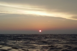 | 파도치는 선상에서 본 일몰이 장관이네요 |