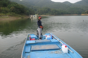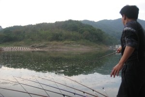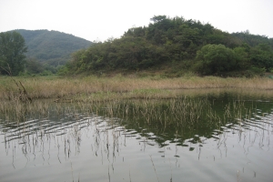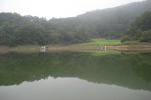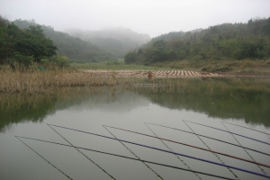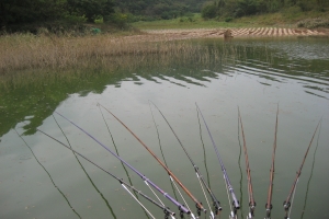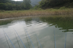 | 고사목과 수풀(공룡골?) 최상류에 배치된 좌대들 |