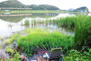 | 자리선택에서 전 오늘 손맛 지대루 봤내요...저쪽에서 부들님 아침에 제옆으로 이사 역시 잔손맛보시고.. |