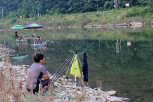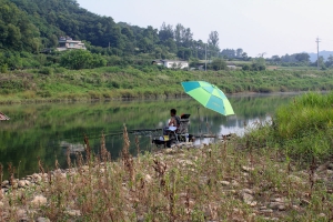 마눌님도 더위속에서 낚시에 임해 봅니다 |