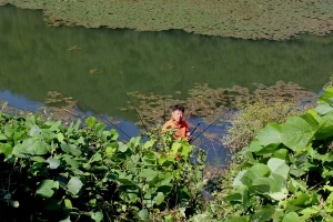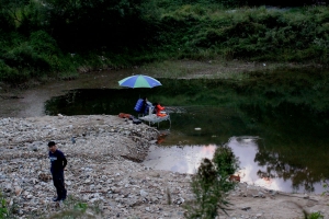 참붕어 채집중