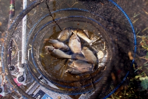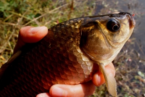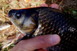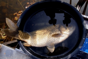 채색 고운 황금색 비늘에 상처없이 깨끗한 붕어를 보면 씨알에 상관없이 만족을한다 |