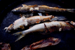 | 올 여름 잡은 은어의 소금구이로 마무리를 한다 |