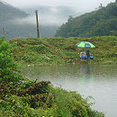 3.2칸 낚싯대의 찌가 점잖이 두마디씩 오르�...