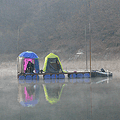안개 자욱한 소류지는 분위기가 좋았으며, 바�...