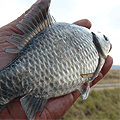 새벽 4시경에 새우입질에 붕어 한 마리를 걸어...