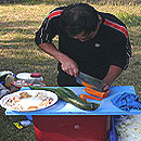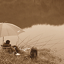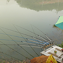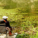 낚시를 잘 모르는 듯한 행인이 살림망의 붕어...