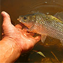 참붕어 채집하고 옥수수 미끼에 채비를 드리�...