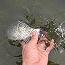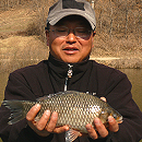 첫 입질에 준척급 붕어가 얼굴을 보여주기에 ...